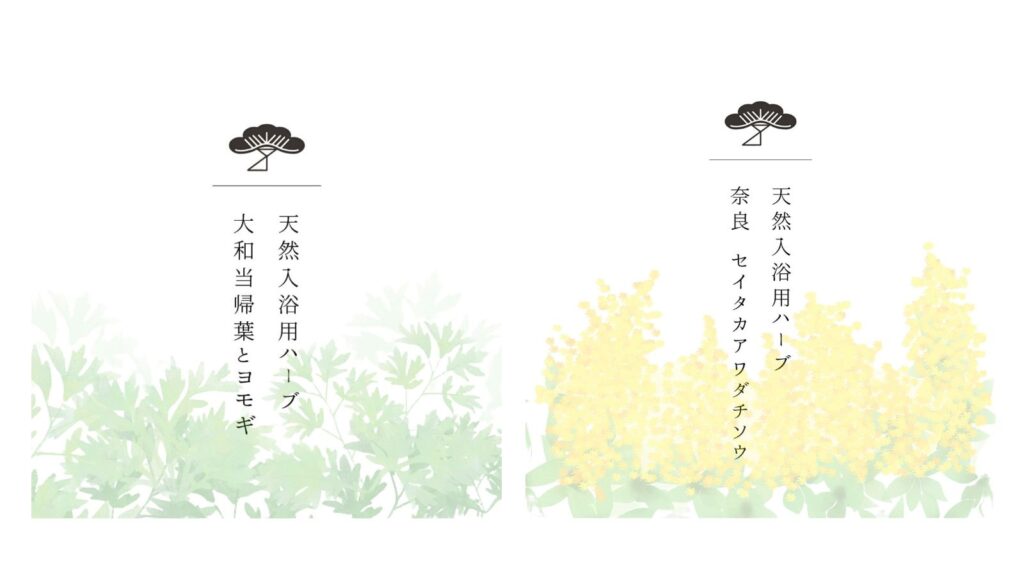 当帰(英名アンジェリカ)は、女性に強い味方の植物として世界的に知られており、中でも奈良県では日本書紀に推古天皇が奈良県でハーブ狩りをしたと記されるほど、ハーブの生産で有名です。日本各地の当帰の中で、特に茎に赤みがあり香りが強く、甘みを持った大和地方(奈良県)の当帰が優れているとのことから、江戸時代には「大和当帰」と呼ばれ、栽培が盛んでした。また、ヨモギは言わずもがなハーブの女王。奈良県で収穫した大和当帰葉とヨモギを天日干しで乾燥、ブレンドした贅沢バスハーブで、ご自宅でも贅沢に温泉気分をご体感いただけます。